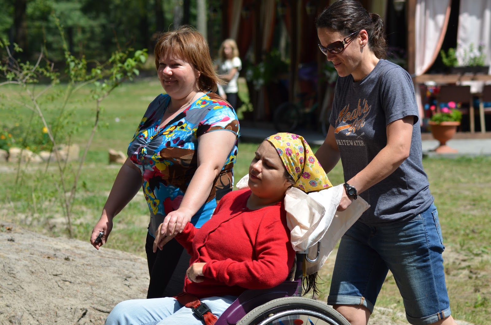 And I was privileged to help the Novatsky family, who are our friends and fellow participants in the ministry. Alik organizes all of the transportation to and from the camp and Larisa organizes the craft groups. Since Alik had to work most of the week and Larisa’s health prevents her from giving Ira any physical assistance, I got to serve them all by being with Ira. We had great fun learning to drive her electric wheelchair, singing at the bonfire, and laughing often.
